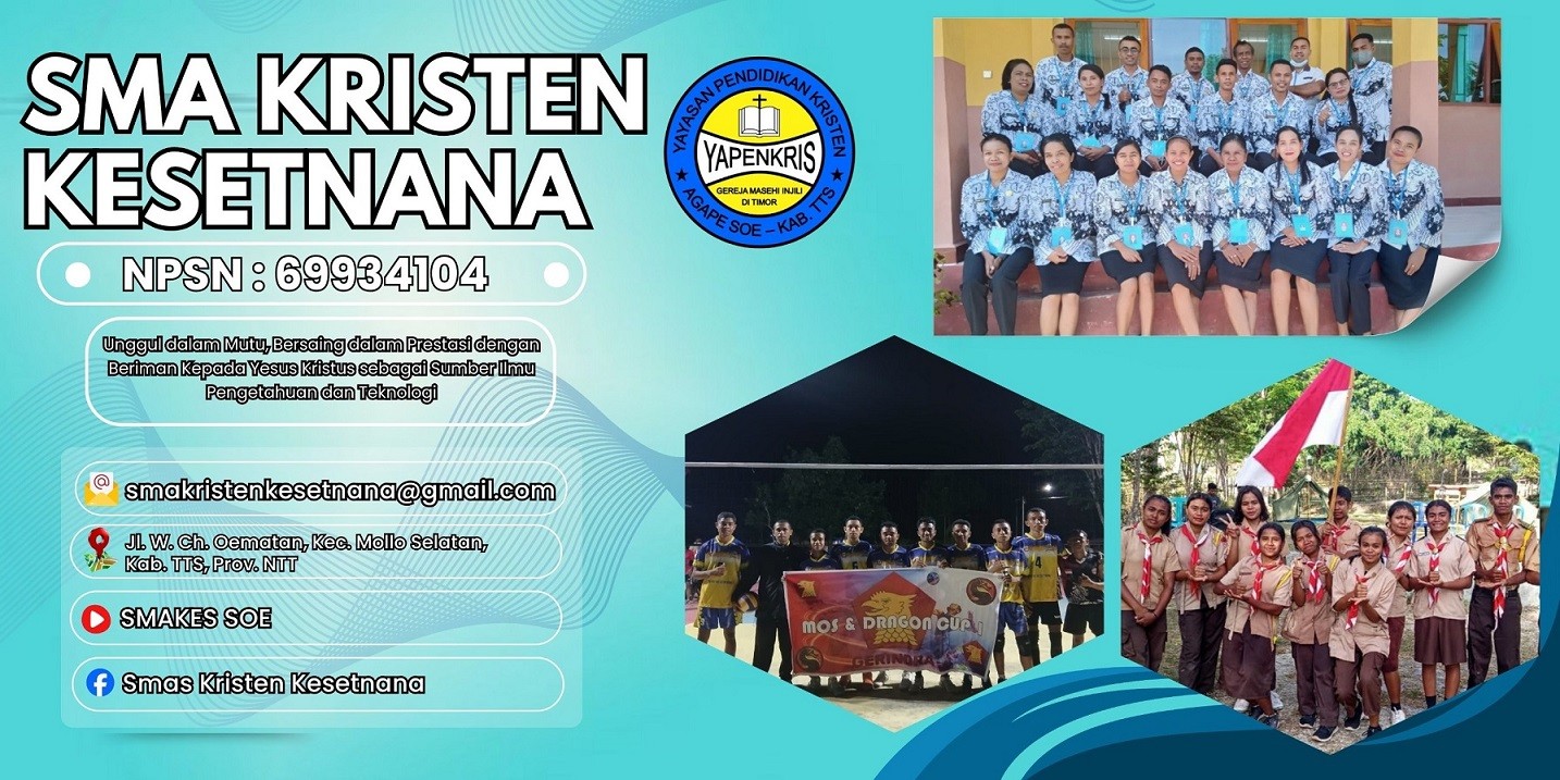 Puji dan syukur kita panjatkan ke hadirat Tuhan Yesus Kristus, karena atas kasih karunia dan penyertaan-Nya, SMA Kristen Kesetnana dapat memiliki media komunikasi berupa website sekolah sebagai sarana informasi dan pelayanan bagi seluruh warga sekolah dan masyarakat.
